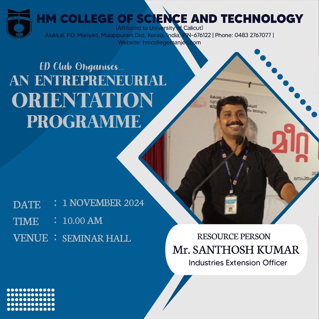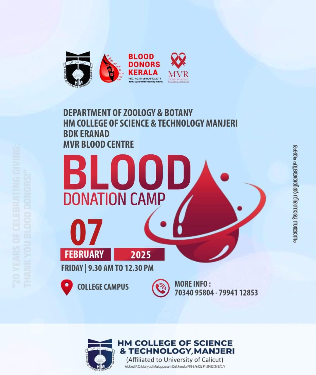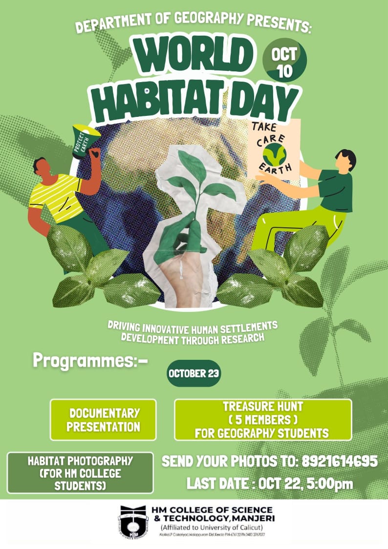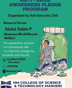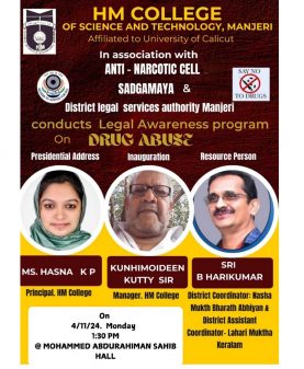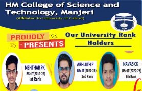 Covering 20 years of its service for the cause of Higher education, focusing the uplifting of the poor and destitute, H.M College of Science and Technology, Manjeri, managed by Hidayathul Muslimeen Yatheemkhana Sangam, is marching ahead with great hope and anticipation.