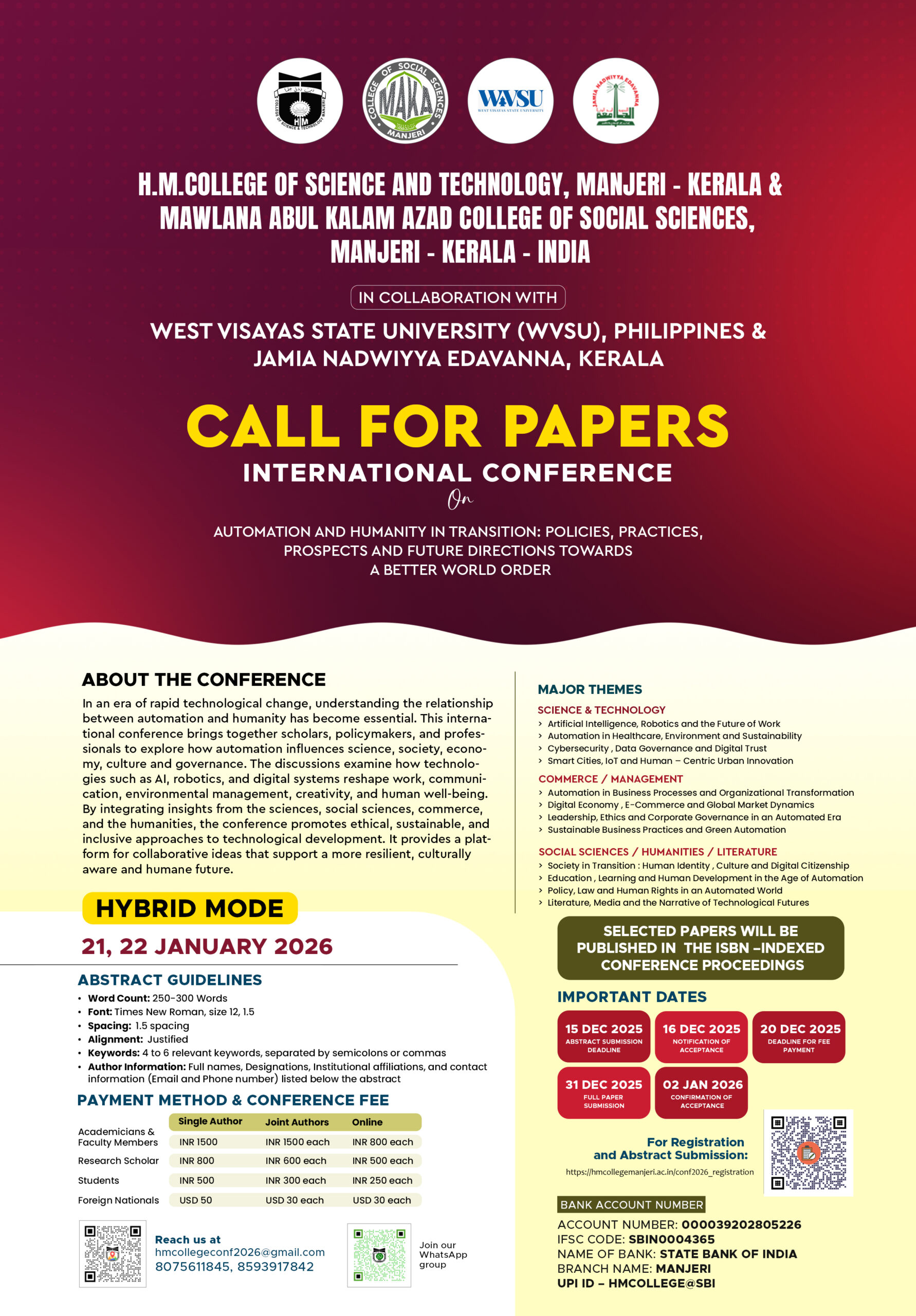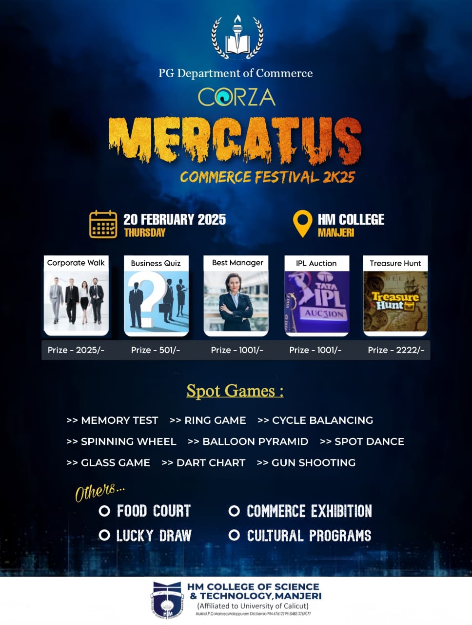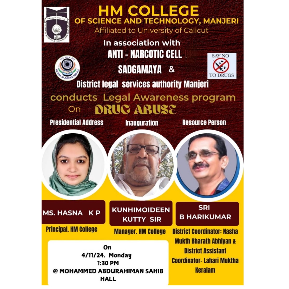 Covering 20 years of its service for the cause of Higher education, focusing the uplifting of the poor and destitute, H.M College of Science and Technology, Manjeri, managed by Hidayathul Muslimeen Yatheemkhana Sangam, is marching ahead with great hope and anticipation.