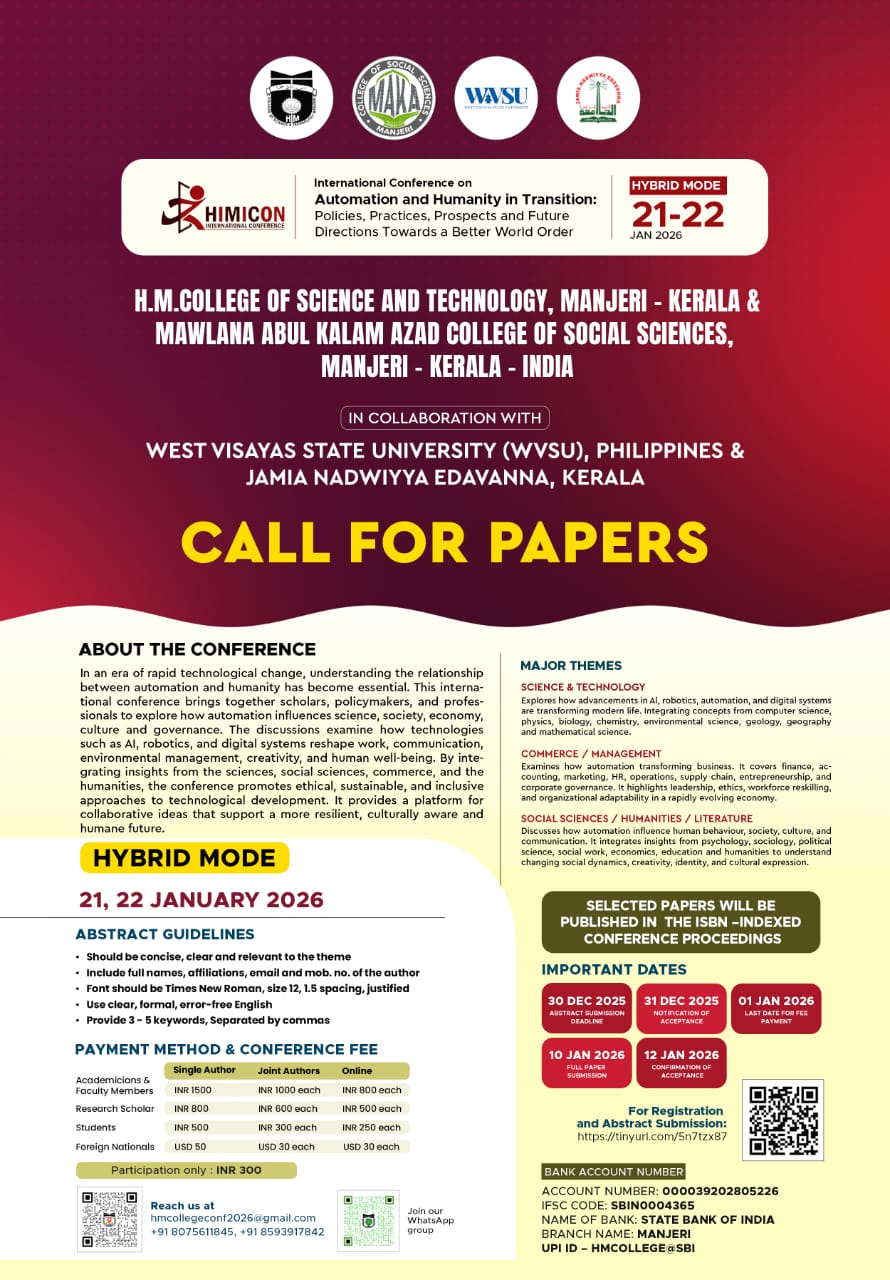 In an era of rapid technological change, understanding the relationship between automation and humanity has become essential. HIMICON 2026 brings together scholars, policymakers, and professionals to explore how automation influences science, society, economy, culture and governance.